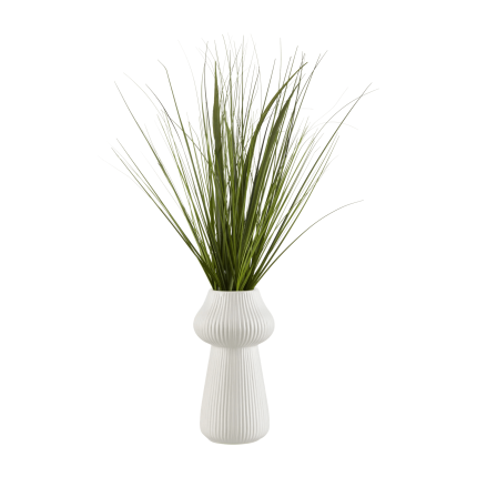 Artificial Grass in Ribbed Ceramic Vase