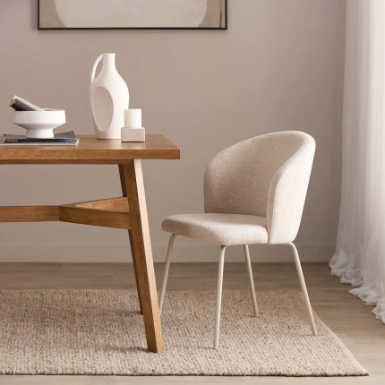 Beige Fabric and Metal Dining Chair