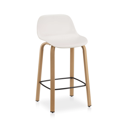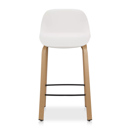 White Plastic and Wood Metal Veneer Counter Stool