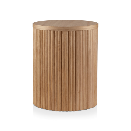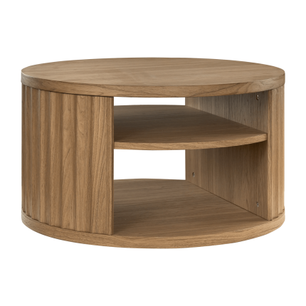 Round Ribbed Wood Coffee Table with Shelf