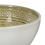 This green ceramic bowl, with its artisanal style, is a true decorative piece. Its elegant and modern design adds a touch of color and sophistication to any space. Featuring a smooth glazed finish and a carefully crafted shape, it combines both aesthetic appeal and functionality, making it perfect for display or everyday use. An ideal choice for those who appreciate craftsmanship and the natural beauty of ceramics.