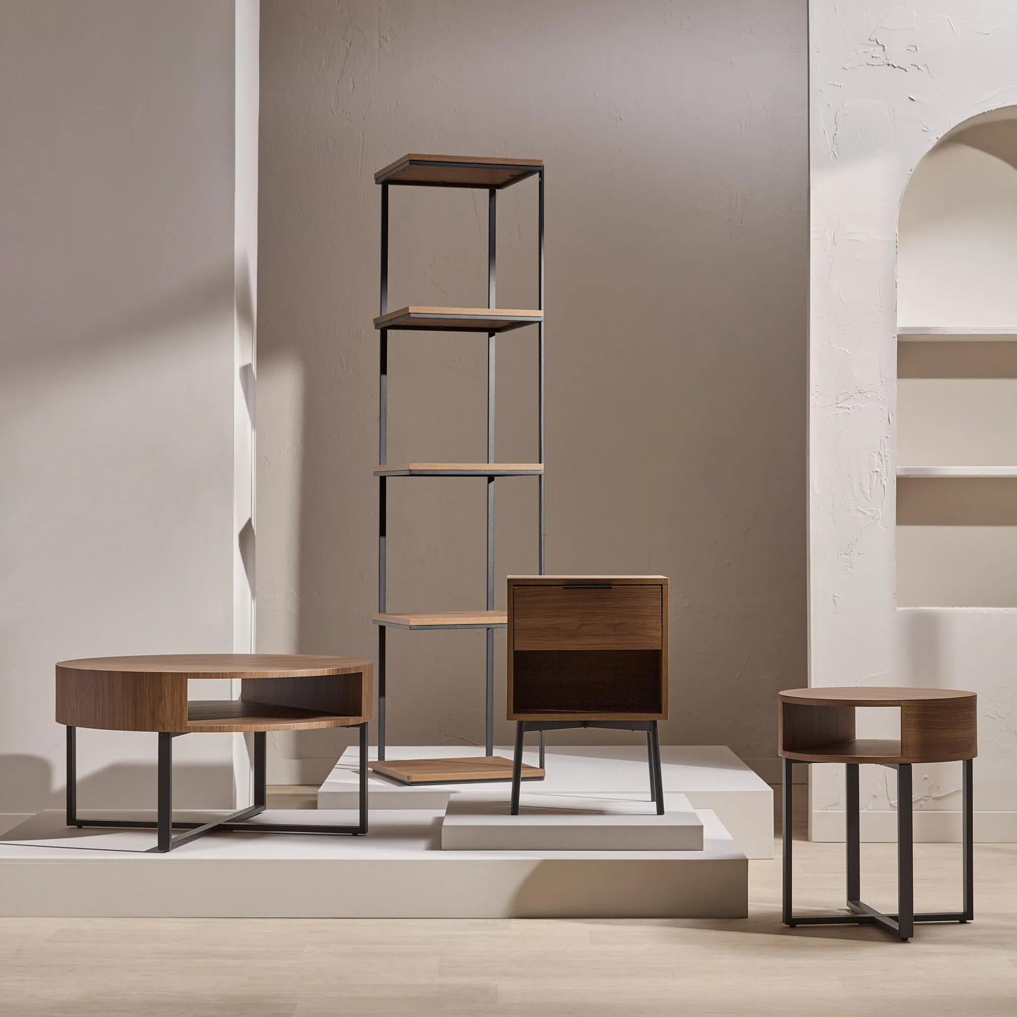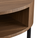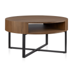 Update your room with our beautiful round coffee table, blending a sleek metal base with a sophisticated walnut veneer top for a trendy, modern look. Its built-in shelf offers the perfect spot for storage or display, making it as functional as it is stylish. Whether you’re showcasing your favorite decor books or stashing away the remotes, this coffee table is the ultimate blend of form and function.