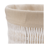 Introducing the Natural Fiber Waste Bin with Linen Liner, a charming blend of sustainability and style. Crafted from 70% paper, 25% iron, and 5% fabric, this eco-friendly bin offers a unique texture that complements any space. The soft linen liner adds a touch of warmth while ensuring easy cleaning. Perfect for organizing your home or office, this waste bin not only keeps your environment tidy but also elevates your decor. Embrace a greener lifestyle with this delightful addition to your space!