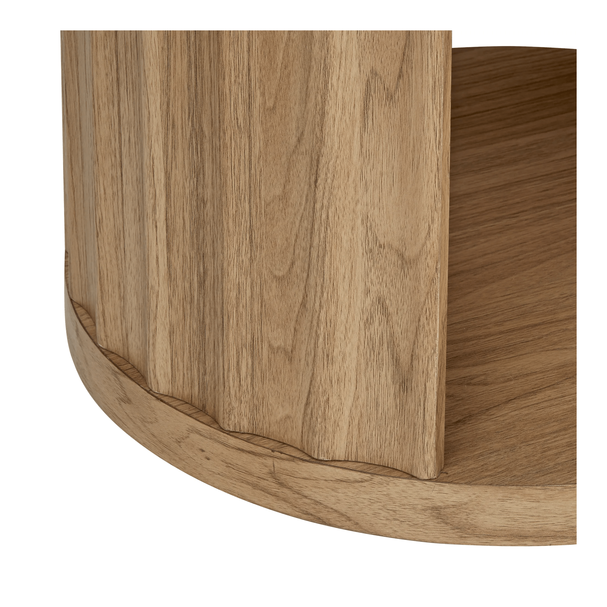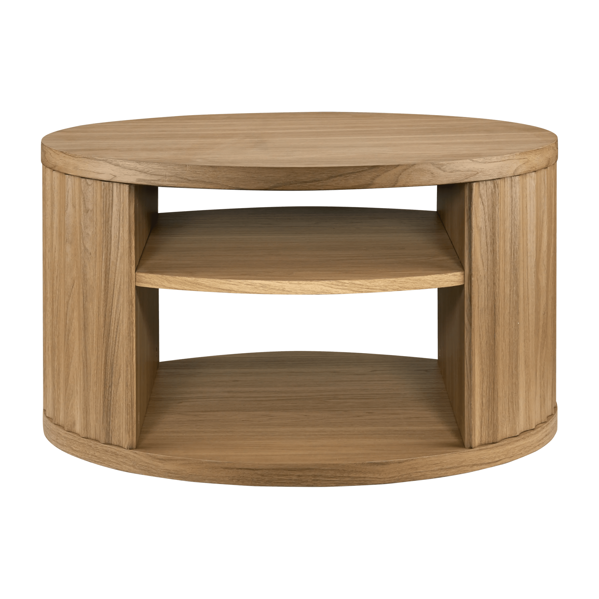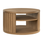 Round Ribbed Wood Coffee Table with Shelf