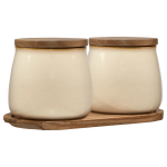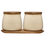 Add elegance and practicality to your kitchen with this set of 2 ceramic beige jars. Perfect for storing spices, sugar, salt, or other dry ingredients, these jars feature a soft beige color that complements any decor. Their minimalist design makes them ideal for neat countertop display or organized storage.