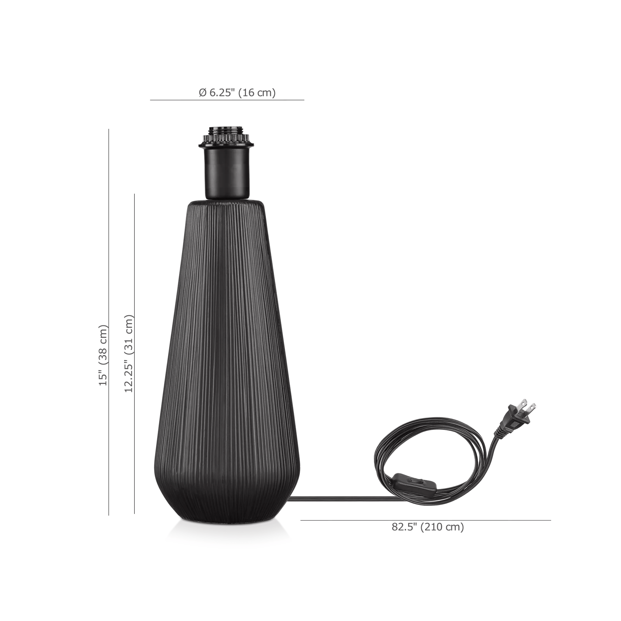 This black ceramic lamp base with a trendy linear texture will add a touch of character to your room. Carefully crafted and designed this ceramic lamp base is sure to elevate your space.