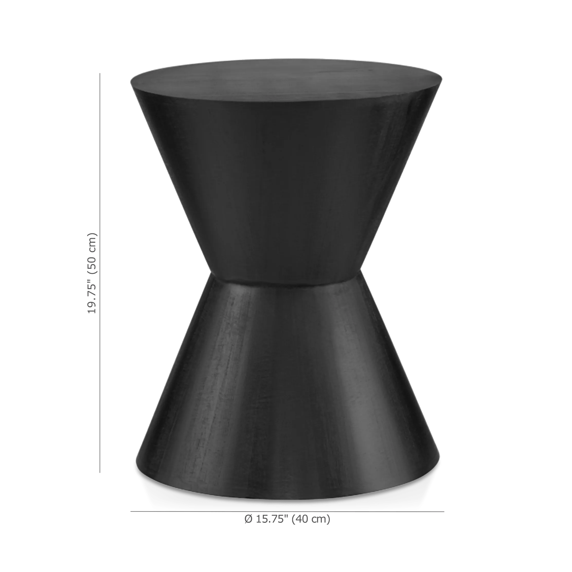 Introducing our exquisite hourglass-shaped accent table, crafted from natural wood and offered in a sophisticated black finish. This stunning piece is the perfect way to add a touch of retro-inspired design to your home decor. Its elegant hue and unique shape make it a true standout that is sure to catch the eye of anyone who enters the room. Use it as a stylish side table in your living room, or place it next to your bed as a chic and functional bedside table. Embrace the beauty of natural wood and vintage-inspired design with this gorgeous accent table.